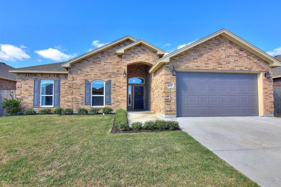 This custom built home is a show stopper! Step inside to find this stunning showcase home out of your favorite magazine. From the faux wood tile floors throughout the main living area and bedrooms, the designer fixtures & colors, to all the architectural details and the chef’s kitchen you will be amazed! Gorgeous coffer & tray ceilings & wainscoting add to the beautiful architectural details. The chef’s kitchen boasts a subway tile backsplash, granite countertops, stainless steel appliances including a gas stove, a spacious island, tons of storage with several display cabinets and a farmhouse sink. The master suite is spacious and bright and the attached bathroom has a floor to ceiling tiled shower and separate soaking tub, walk-in closet and two separate vanity areas. One of the other full bathrooms has a double vanity and the other full bath has a tiled shower. Great floorpan with spacious rooms, a large open living area and split bedrooms with three bedrooms together and the master by itself. Enjoy the covered patio outside and the convenient location near Veterans Memorial High School, shopping and local restaurants. This home won’t last long!
