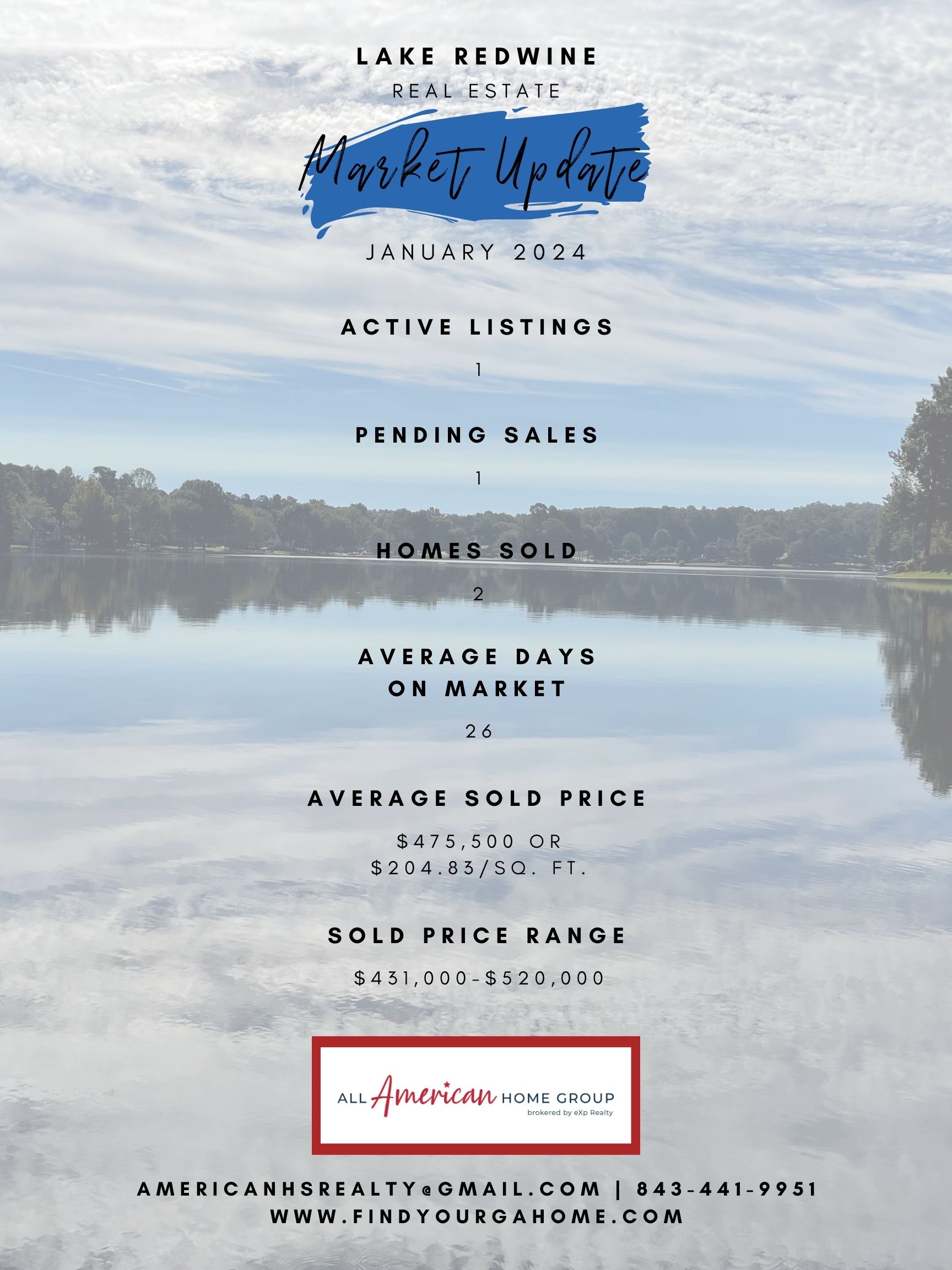 As we continue to see the number of homes available decrease we also have seen a decrease in the average number of days on the market which differs then in other parts of the county. I think it is safe to say that it is still more of a sellers market at the moment in Lake Redwine. With the shortage of inventory sellers are getting asking price or extremely close to it, so buyers still need to put their best foot forward when making an offer. For sellers it is the perfect time to sell!